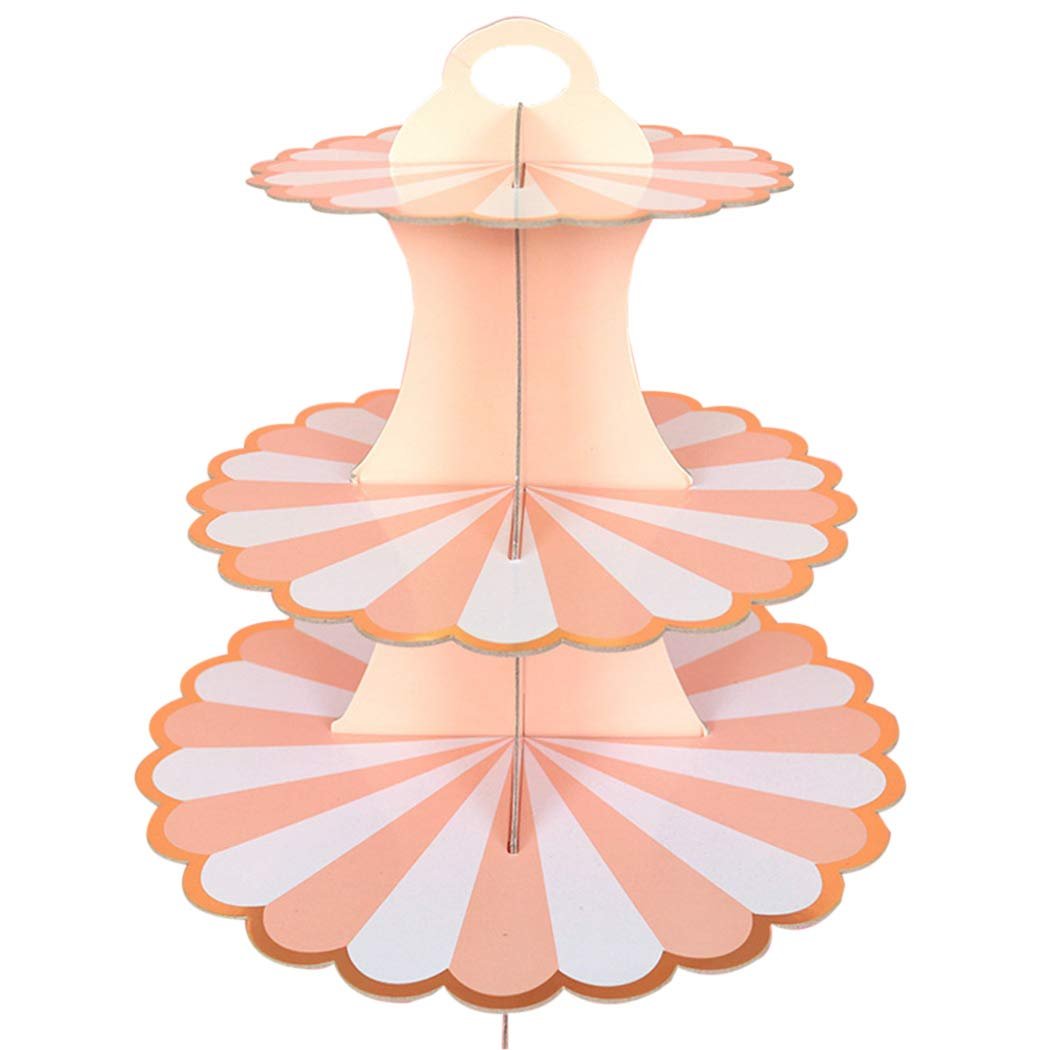 1 Pack Cupcake Stand 3-Tier Lace Edge Dessert Stand, Gold Orange Cardboard Cupcake Stand, Birthday Party SUPPLIES TIER 3 Tier ( Random colour and shape )