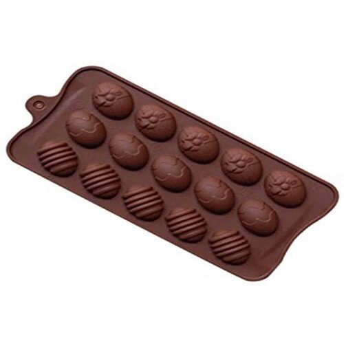 TPV® 15-Cavity Easter Egg Silicone Mould For Homemade Soap, Cake, Cupcake, Pudding, Jello, Bread,Soap Ice Cube Tray Mould Mold Shape Silicone Brown Chocolate Moulds