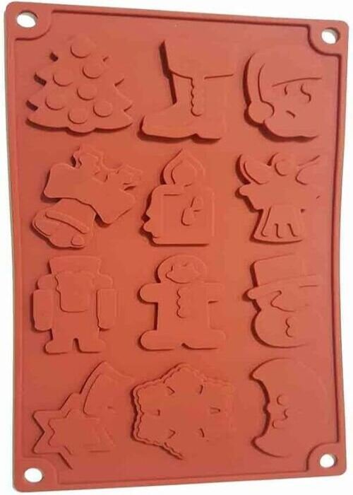 TPV® 15-Cavity New Christmas Tree,Candle,Christmas Shoes, Christmas Star Chocolate Silicone Mould For Homemade Soap, Cake, Cupcake, Pudding, Jello, Bread,Soap Ice Cube Tray Mould Mold Shape Silicone Brown Chocolate Moulds