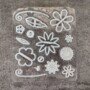 Fantasy Flowers Instructions Sugarpaste your cake and board. Emboss the curly stems into the sugarpaste. Leave to dry. Pipe green softened sugarpaste over the embossed curly stems. Pipe straight stems between. On a lightly greased non-stick board roll out white Mexican paste. Grease the flower cutters and place onto the paste. Press firmly and evenly. Remove the cutters and surplus paste. Place the flowers onto a dusting sheet (laminated paper) and dust in the selection of lustre dust colours of your choice. Moisten with water and attach onto the cake side in a random pattern. For top decoration attach two flowers either side of a silver wire. Leave to dry before placing into a posy pick.