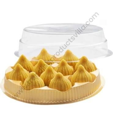 TPV® 1pc 11 Cavity Round PVC modak Tray with Transparent lid Cover, Ganesh chaturthi