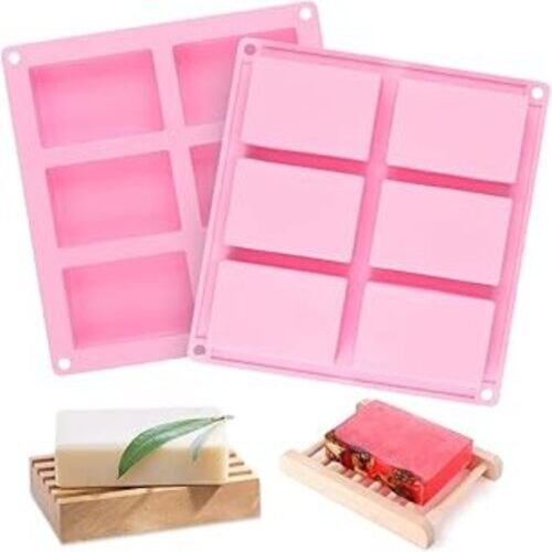 TPV® 1Pc 6 Handmade Rectangle Silicone Soap Mold Chocolate Cookies Mould TPV®ating Fondant Molds Pink Color