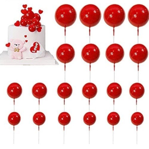 TPV® – 20 Pc Red Faux Balls Topper For Cake & Cupcake Decoration.