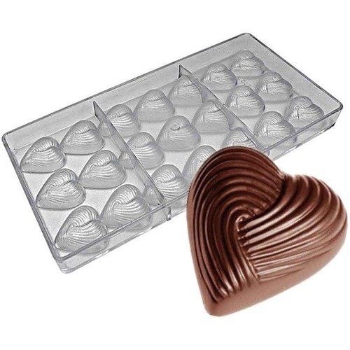 TPV® 21 Cavity Heart Wave Pattern Chocolate Molds Shape Plastic Polycarbonate Chocolate Mold Jelly Candy Mould