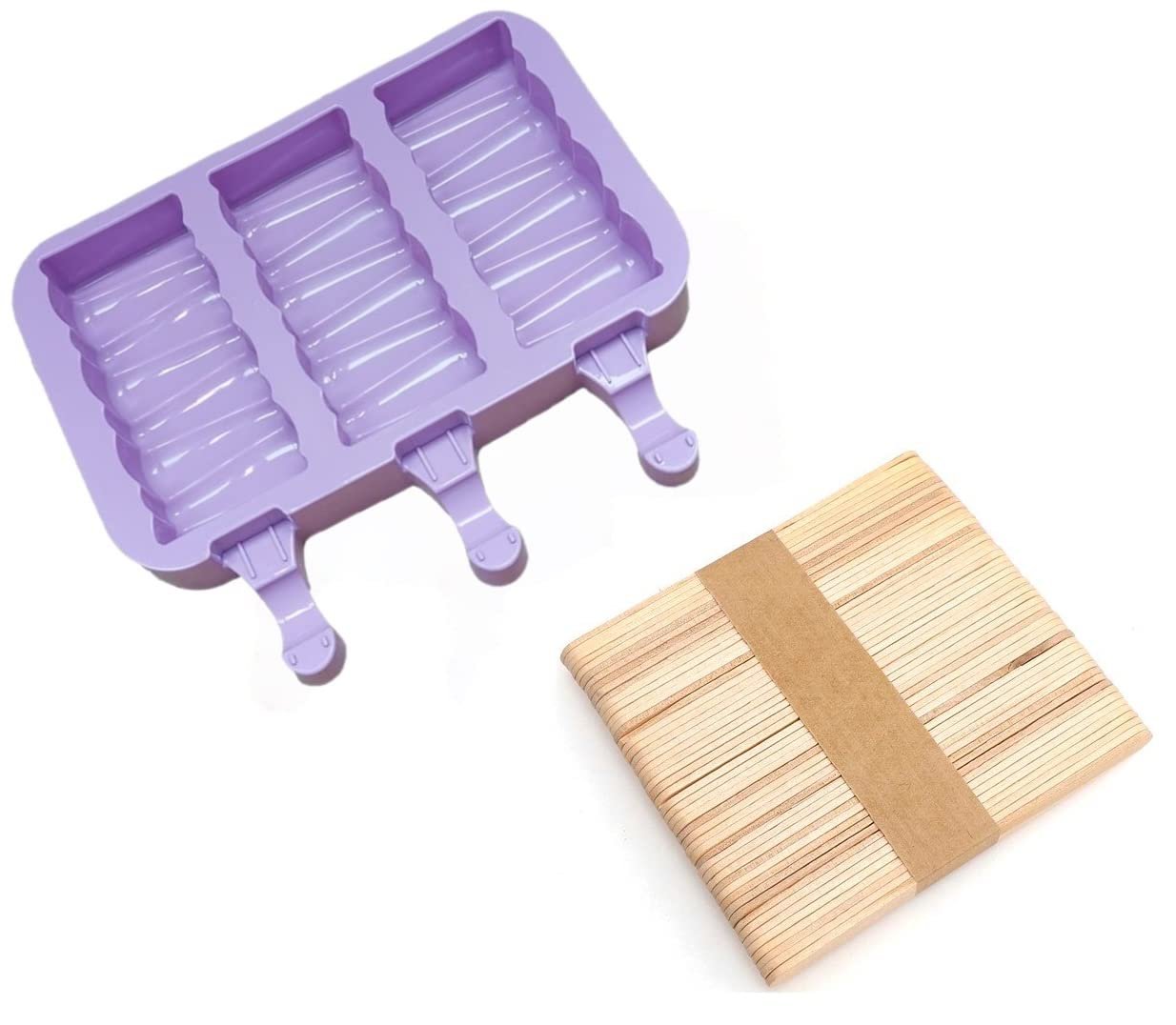 TPV® 3 Cavity Silicone Popsicle Mould with (50pcs Wooden Ice Cream Sticks)