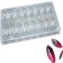 Fill the cells with tempered chocolate. Even better ? you can stack several one on top of each other in the fridge without causing damage to the chocolates in Moulds below. Tip out excess chocolate and then remove any excess chocolate from the surface using a bench scraper. Once the shell has hardened, pipe in soft fillings before capping off with more chocolate to seal each cell. Once fully hardened, a couple of gentle taps on the work surface are all that is required. Then, simply turn over your mould and tip the finished chocolates out. To clean, simply wash under the hot tap ? detergent is generally not needed. Take care not to touch the insides of the cells of the mould as fingerprints can be a pain to get rid of and will spoil the finish of your final product. The inside surface of Moulds can be polished with cotton wool.