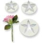This set of easy-to-clean plastic calyx cutters includes three different sizes so you can easily create lifelike calyces for all your sugar roses, from buds to full blooms. These handy calyx cutters are also useful for creating blossoms and star shapes for celebration cakes.