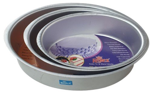 3 Pcs Mould, Size in cm: Small – ( 19.5 x 14 x 5.5 height), Weight: 70 gms, Cake Capacity: 500 gms approximately. Medium – ( 22 x 15.5 x 6 height), Weight: 100 gms, Cake Capacity: 750 gms approximately. Large – ( 25.5 x 18.5 x 6 height), Weight: 130 gm, Cake Capacity: 1Kg