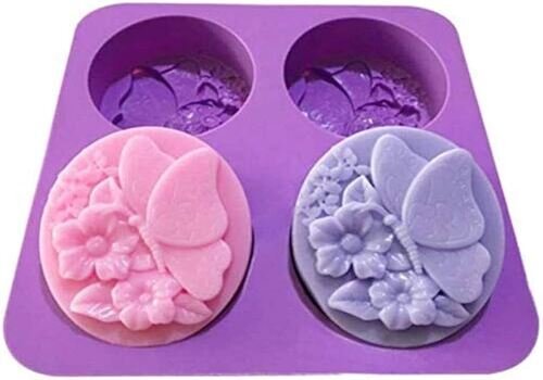 TPV® 4 Cavity Butterfly Flower Silicone Moulds For Soaps And Chocolate Jelly Desserts?Mould
