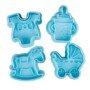 4pcs/Set Baby Buggy Clothes Rocking Horse Milk Bottle Shape Fondant Cake Decorating Cookie Biscuit Plunger Cutter Mould Tools
