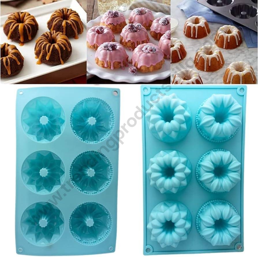 TPV® 6 In 1 Silicon Bakeware Mix Flower Shape Bundt Cupcake Moulds Muffin Mould