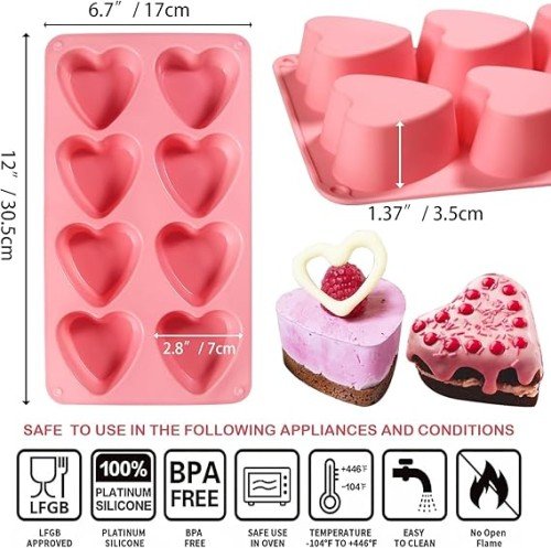 TPV® – 8 Cavity Heart Shape Silicone Chocolate Mould For Desserts, Homemade Soaps, Muffin, Brownie, Cornbread, Cheesecake, Panna Cotta, Pudding, Jello Shot.