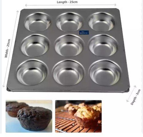 This tray is of big size . Muffin Tray – Cup Cake Tray for 9 cups. manufactured in India Cups are non removable