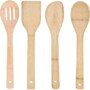 - MULTI-FUNCTIONAL BEHAVIOUR: Each versatile tool in this complete set is multi-functional. Use the wooden bamboo spoons for stirring and serving and the spatulas for turning and scraping. The angled spoon with a hole is perfect for mixing risotto, soups, and sauces and the tongs easily grip and flip – they are even safe to use as toaster tongs, as the wooden tongs safely remove toast from the toaster without the danger of metal utensils