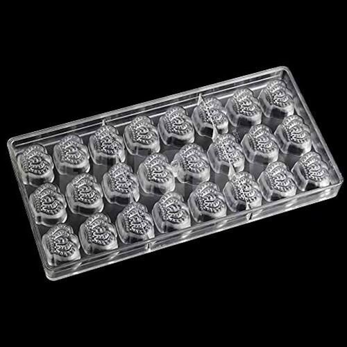 It is a brand new polycarbonate chocolate mould. They are reusable, easy to use and strong.You can stack the moulds on top of each other in the fridge without causing any damage to the chocolates in the moulds. Fill the cells with tempered chocolate. Tip out excess chocolate and then remove any excess chocolate from the surface. Kindly allow slight deviation in measurements due to manual measurements. The image may slightly differ due to difference in light.
