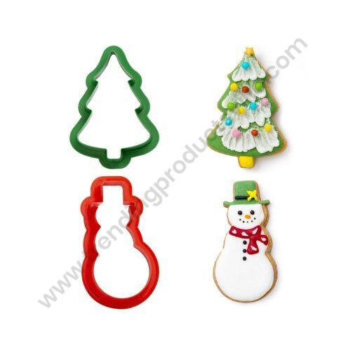 Christmas Cookie Cutter, 3D Xmas Theme Fondant Cutter, Cake Decorating Cupcake Mould Baking Biscuit Plunger Cutter Embossed Pastry Cutter (Christmas Tree & Snowman)