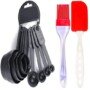Set of 8pcs thick hard wearing green stackable measuring cups, with double pour sides a flawless kitchen accessory. All come stacked together on a ring thumb rest on each handle sizes each cup has several different sizes from smallest to largest cups,1/4 cup, 1/8 cup, 4 table spoons, 2 tablespoons, 1/2 cup, 1/4 cup, 8 tablespoons, 4 tablespoons, 2/3 cup, 1/3 cup, 5+ 1/3 tablespoons, 1 cup, 1/2 cup, 1/4 cup, 4 tablespoons 4 stackable measuring spoons 1/4 teaspoon 1/2teaspoon 1 teaspoon 1 tablespoon. Box Contents: 1 set of 8 pieces measuring cup. This product is very useful for measuring the various kitchen items like masala powders, oils, salt etc. It is made by high quality plastic which is food safe.