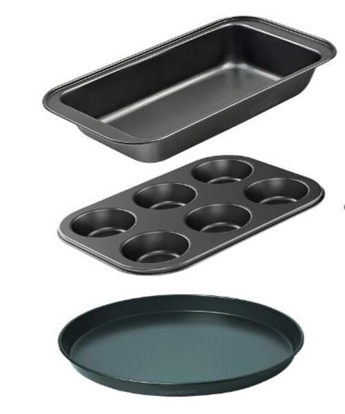 SIZE- Pizza tray-26cm, bread mould-25cm, 6 slot muffin tray
