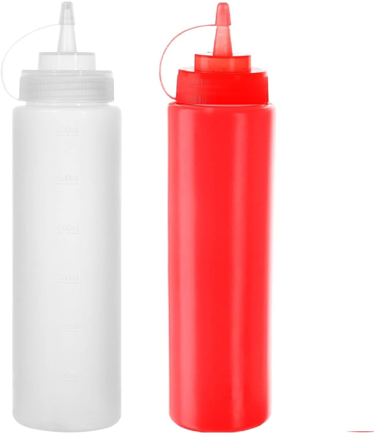 TPV® Condiment Squeeze Bottles Ketchup Dispenser 2 Plastic Sauce Squirt Bottle with Cap Lids ( 720 ml )