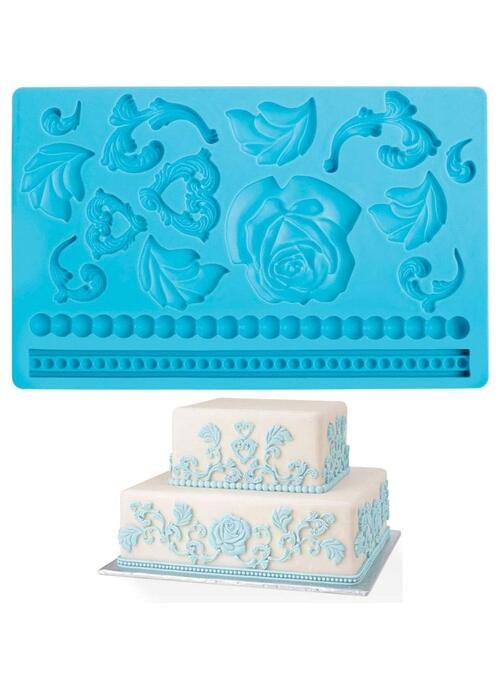 Create gum paste floral art, leaves and frame edges with this quality gum paste and fondant silicone mould. The mould also includes a beaded border as well as another intricate border. Made from food grade silicone it is perfect for use with fondant and gum paste.