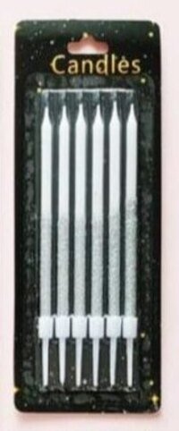 SKU: TPV- Glitter candle birthday anniversary cake dacoration Candle ( Silver Pack of 6)