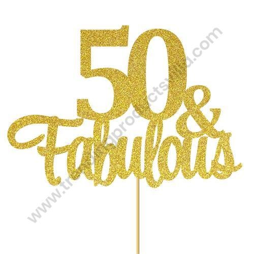 TPV® Gold Glitter 50 & Fabulous Cake Topper – 50 Anniversary/Birthday Cake Topper Party Decoration (50Th)