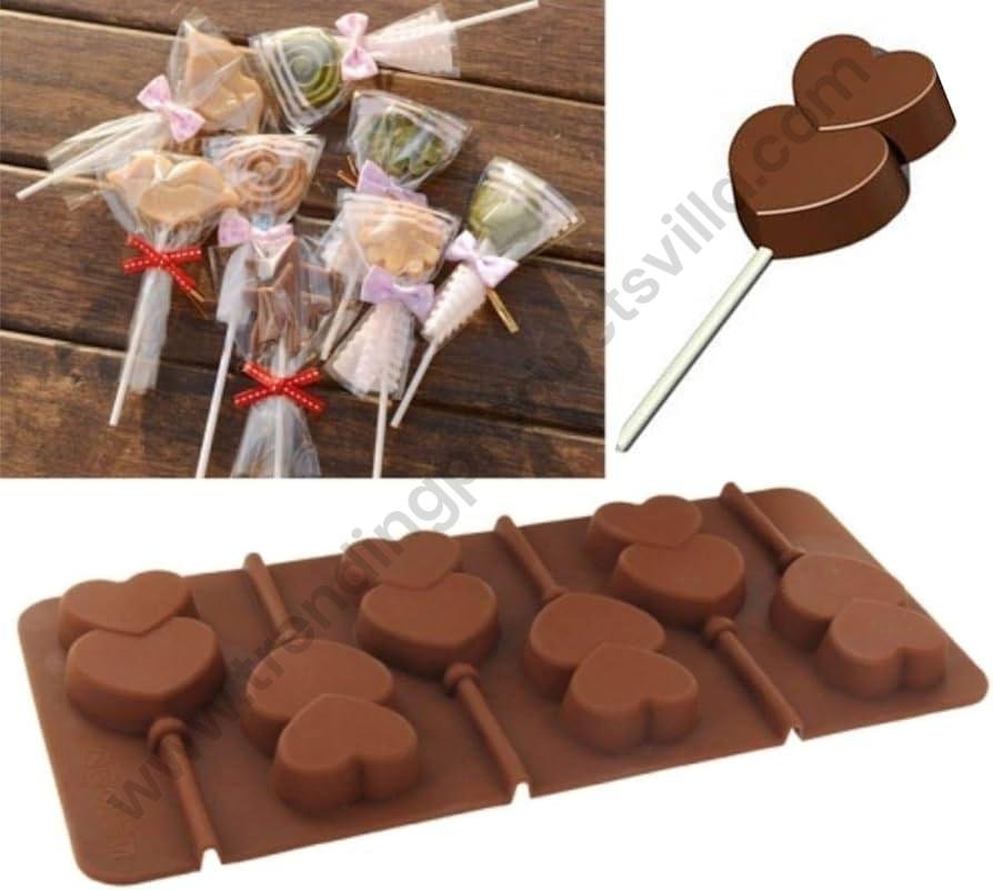 TPV® Lollipop Mould Heart Shape 6 Cavity Silicone Chocolate Ice Cube Mold Diy Soap Mold