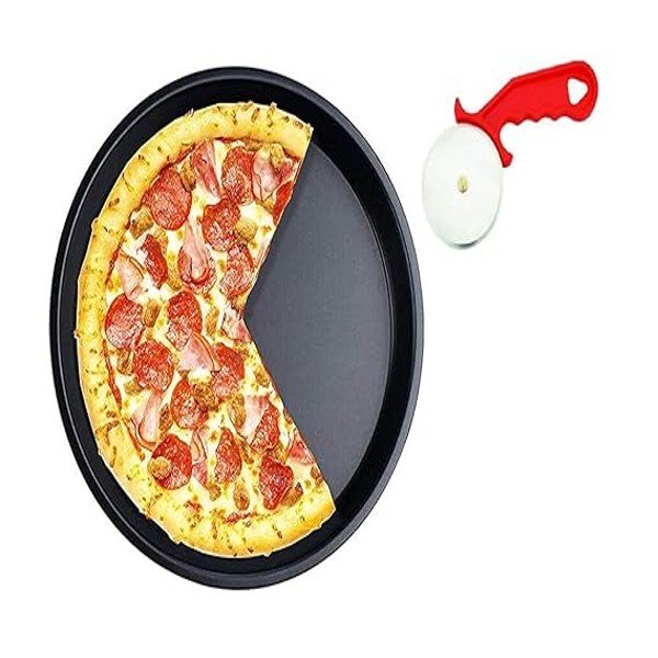 Specially designed for pizza, thickening integrated molding process, evenly heated, it is the ideal pizza pan for home. Round pizza plate, the food made looks very appetizing, Non-stick pan bottom after baking, easy to demould Specially designed for pizza, thickening integrated molding process, evenly heated, it is the ideal pizza pan for home.