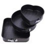 Complete set of 3 Spring form Pans. This set offers you 3 different shapes (square, heart, round) for baking versatility. Non-stick carbon steel with removable waffle-textured bottom. Heavy-duty quick release clip for easy product removal and easy clean up. This set is a must-have for any Baker! The spring latch and removable bottom make baking much easier. The durable carbon construction with nonstick coating makes it easy to store and clean. These spring form pans have many versatile uses besides baking cake, such as cheesecakes, tortes, quiches and frozen desserts. Ideal for making cakes with a lose base and spring form quick release clasp leaving your cake in perfect condition. Ideal for removing cheesecakes. Perfect for delicate cheesecakes. Quick release metal buckles. Non stick finish baking tins removable bottoms in spring form design ensure you can serve in style easy spring release clip. Take your baked treats straight from oven to party. Diameters for the springform pans are: 20cm, 22cm, 24cm