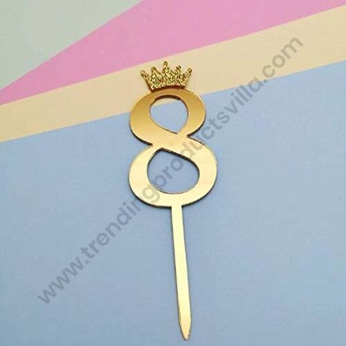 TPV® Number 8 Cake Topper/Happy Birthday Cake Topper/ 8Th Birthday/Gold Cake Topper/Crown/Cutout Cake Topper/Number Cake Topper