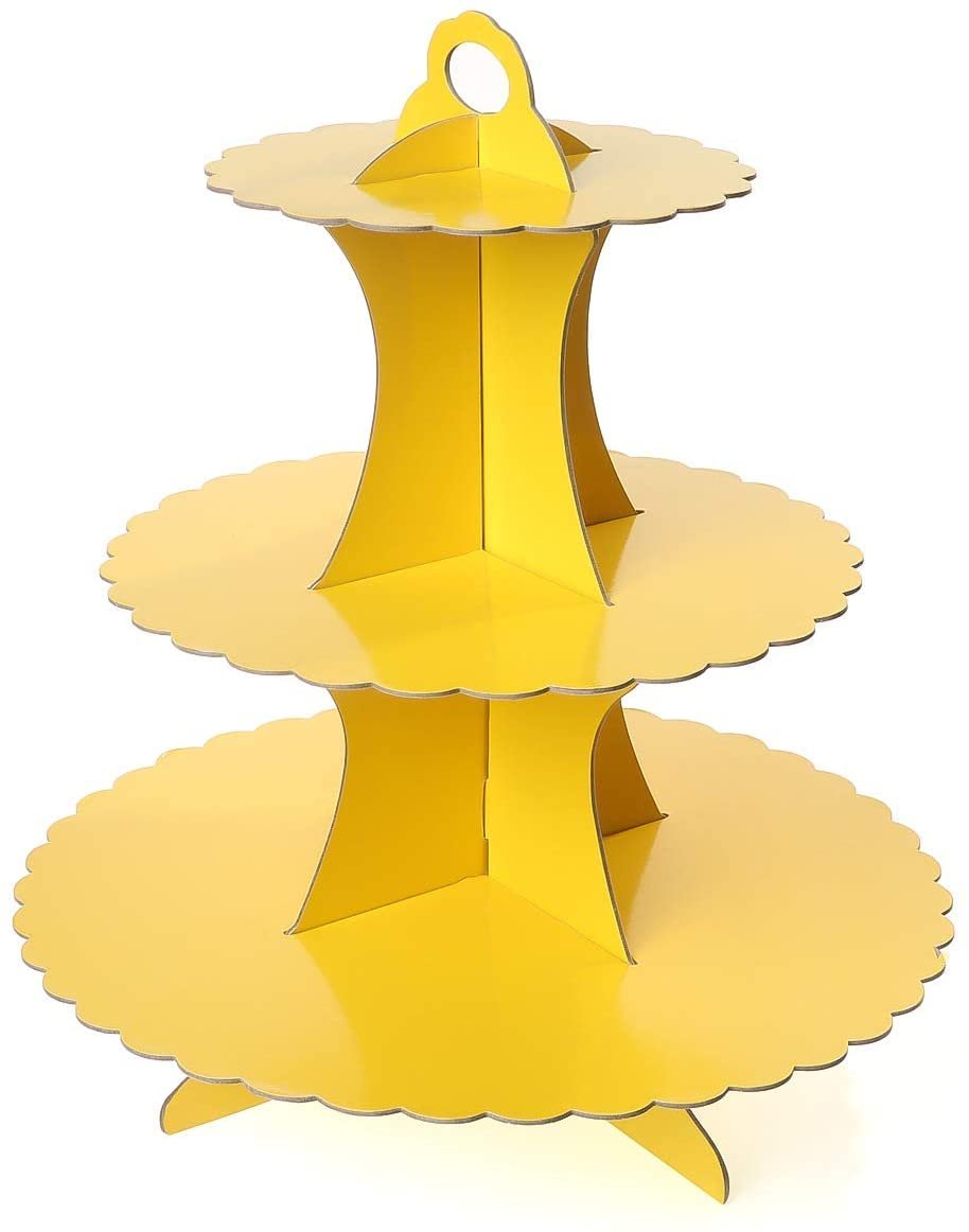 Paper Cardboard 3-Tier Treat Tree Cupcake Stand for Cake Table Decoration, Pack of 1, Plain Yellow ( In random colour )