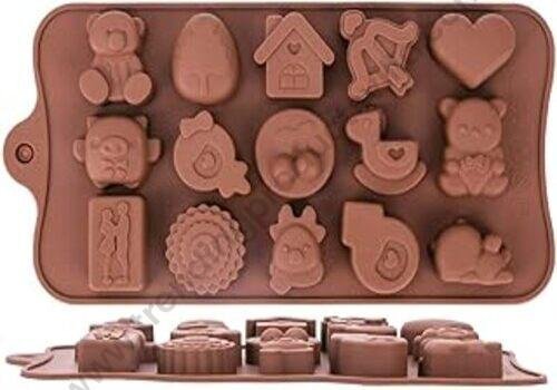 TPV® Silicon 15 Cavity New Teddy,Couples And Heart Design Brown Chocolate Mould, Ice Mould, Chocolate Decorating Mould