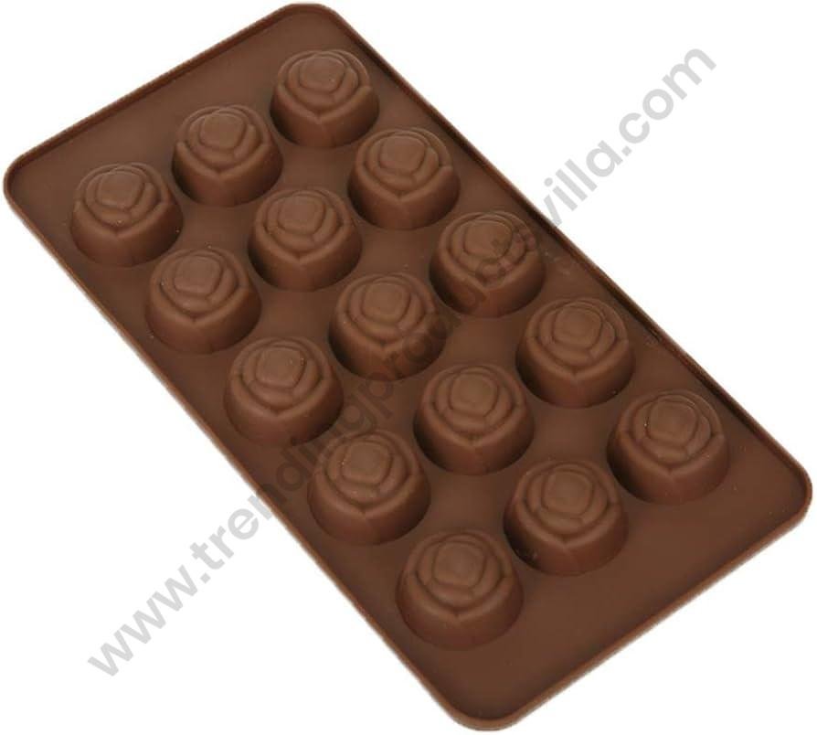 TPV® Silicon 15 Cavity Rose Shape Brown Chocolate Mould, Ice Mould, Chocolate Decorating Mould