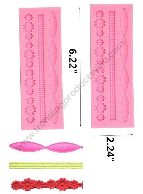 TPV® Silicon 3 Cavity Flower Rope Bubbles Lace Border Silicone Fondant Mould Marzipan Mould