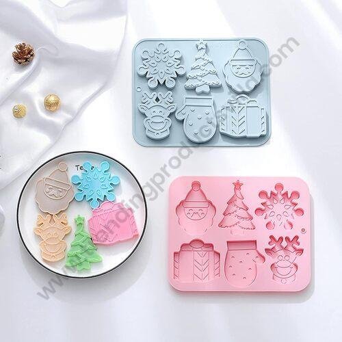 TPV® Silicon 6 Cavity Christmas Theme Xmas Tree, Snowflake, Mitten, Deer Silicon Chocolate Mould