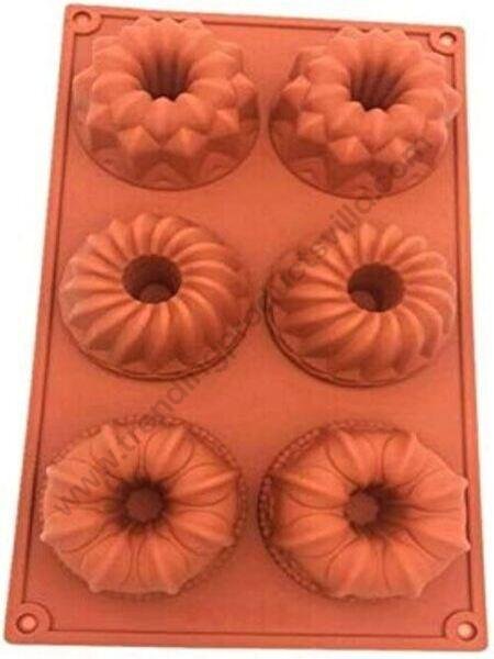 TPV® Silicon 6 Cavity Round And Flower Donut Mould Shape Muffin Cupcake Mould