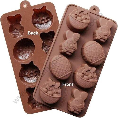 TPV® Silicon 8 Cavity Egge Easter Bunny And Basket Die Design Brown Chocolate Mould, Ice Mould, Chocolate Decorating Mould