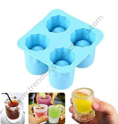 Silicone Ice Shot Glass Maker 4 Cup Shape Ice Cube DIY Molds Trays Freeze Mold Maker Icing Box Cube BPA Free Chocolate Candy Mould Non Stick Multicolor